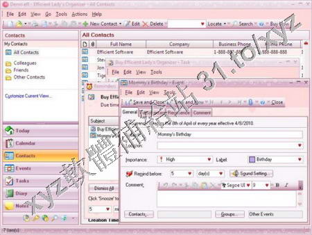 • Efficient Software Efficient Ladys Organizer Pro v1.05 Build.16 英文正式版(個人資訊管理系統軟體)