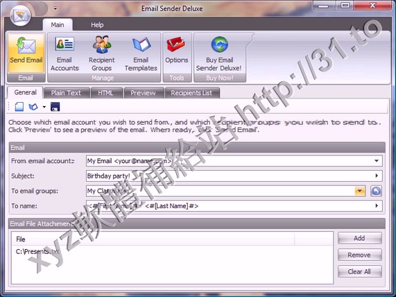 Email.Sender.Deluxe是一個電子郵件群發軟體,支援手動輸入地址,還支援從數據庫,