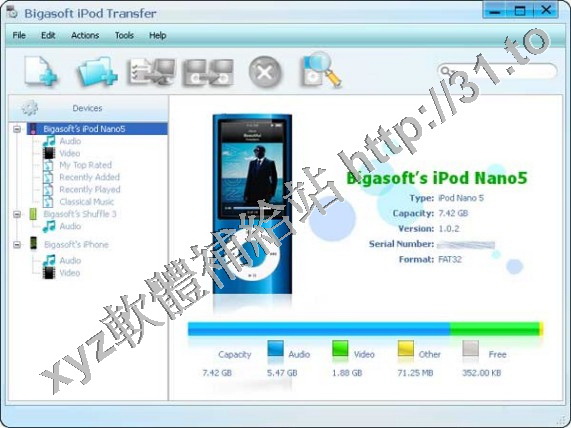 • Bigasoft iPod Transfer v1.6.7.4310 英文正式版(媒體轉換軟體)